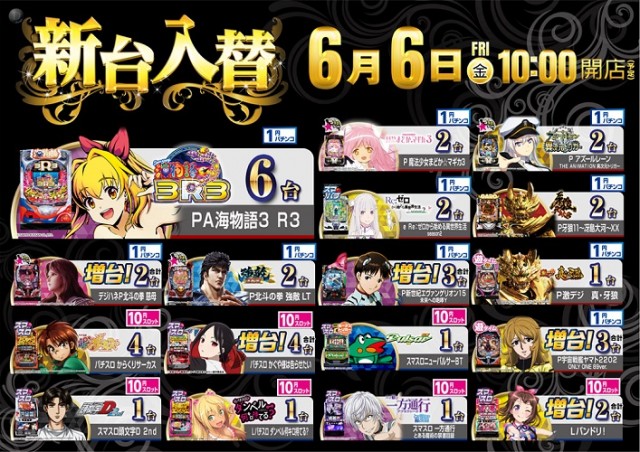 本日 新台入替10:00OPEN予定 詳細はHPへ