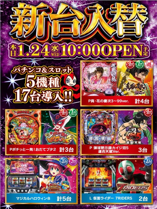 新台入替!! 朝10時オープン!!