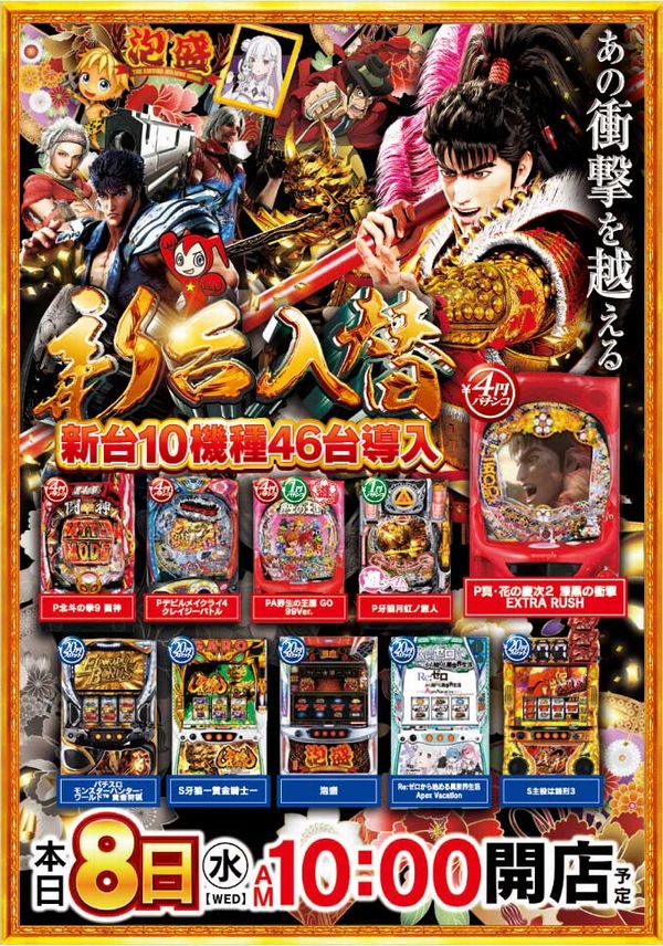 入場順番の抽選券配布=9時10分~9時25分。入場順番の抽選開始=9時30分。整理券の番号順に整列=9時50分。整理券の番号順に入場=10時。 |