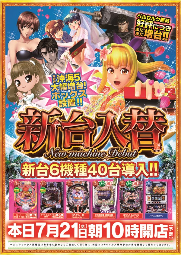 新台入替!! 朝10時オープン!!