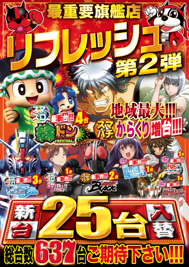 4パチ:176台 1パチ:176台 20スロ:285台 |