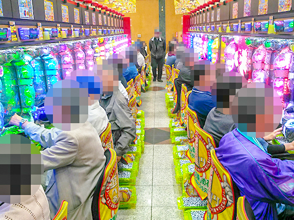 1円パチンコには多くのプレイヤーが集合。海物語シリーズにおいてはほぼ満席となっており、スペックを問わず様々な機種から活気が感じられた。
