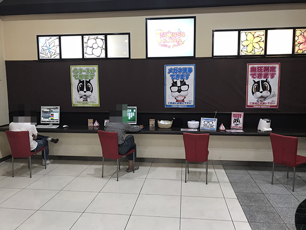また、メガネ洗浄機や血圧計といった設備も充実。漫画が置かれているレストスペースやインターネットなどを楽しめるコーナーも人気を集めていた。