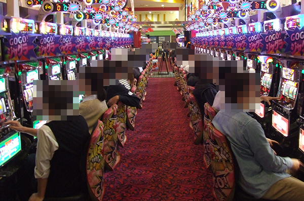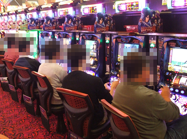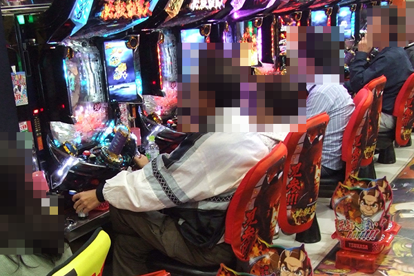 15時頃の20円パチスロにおいて、人気を集めていたのが「バジリスク~甲賀忍法帖~絆」と「押忍!番長3」。シマ全体に笑顔が広がっていただけに、プレイヤーたちは心から遊技を楽しめていたように思う。