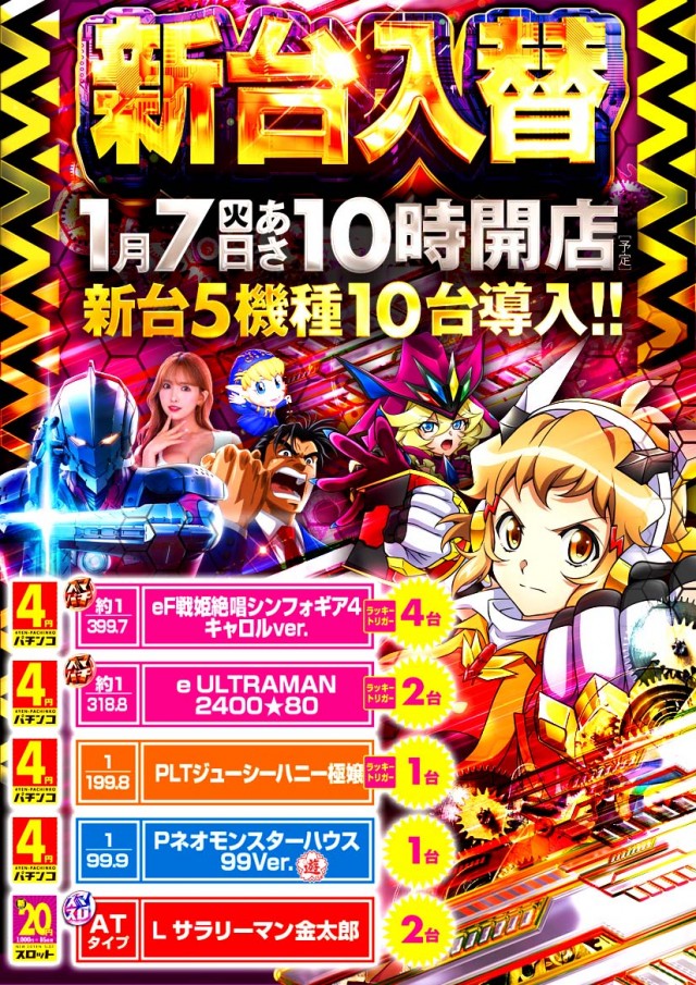 明日🕙新台入替10時開店🕙ご来店お待ち致しております🌟💪