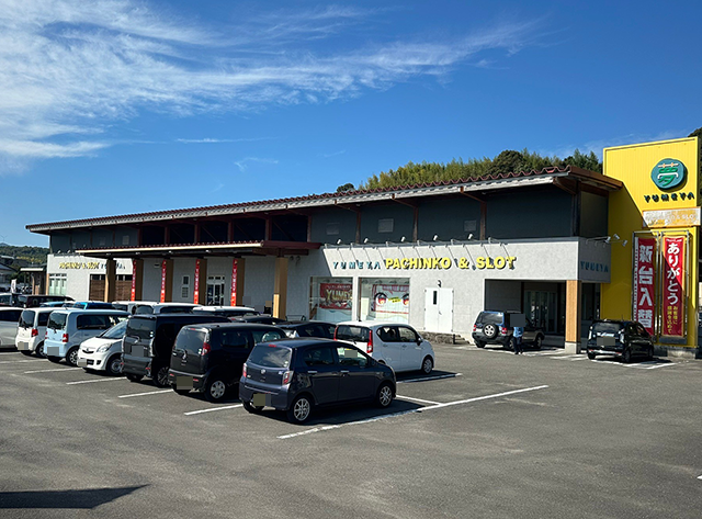スマスロやボーナスタイプなど、多彩な機種が楽しまれていた「夢屋天草店」。