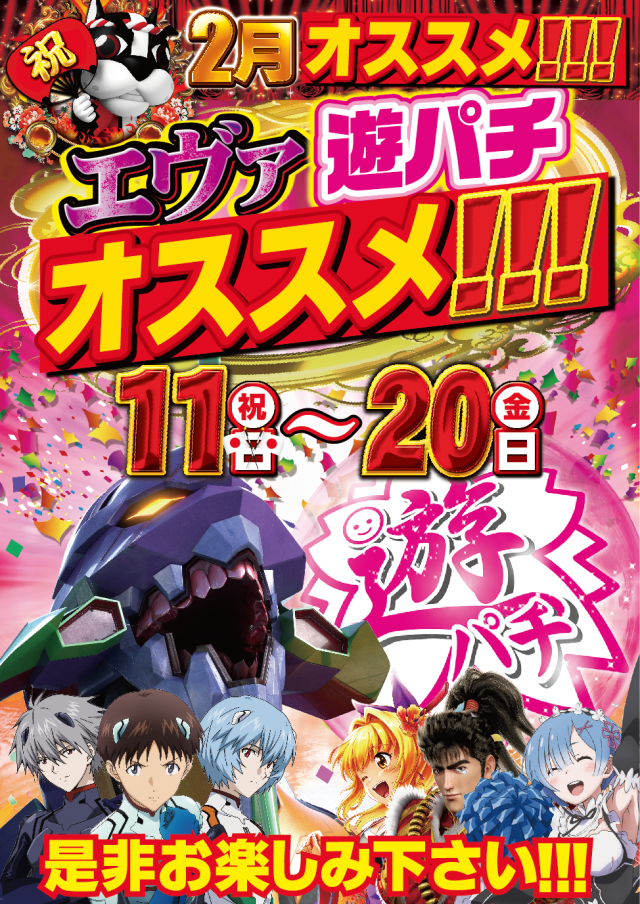 2月2日-店休日- ☆3日 新台入替✕いろすろ(金)