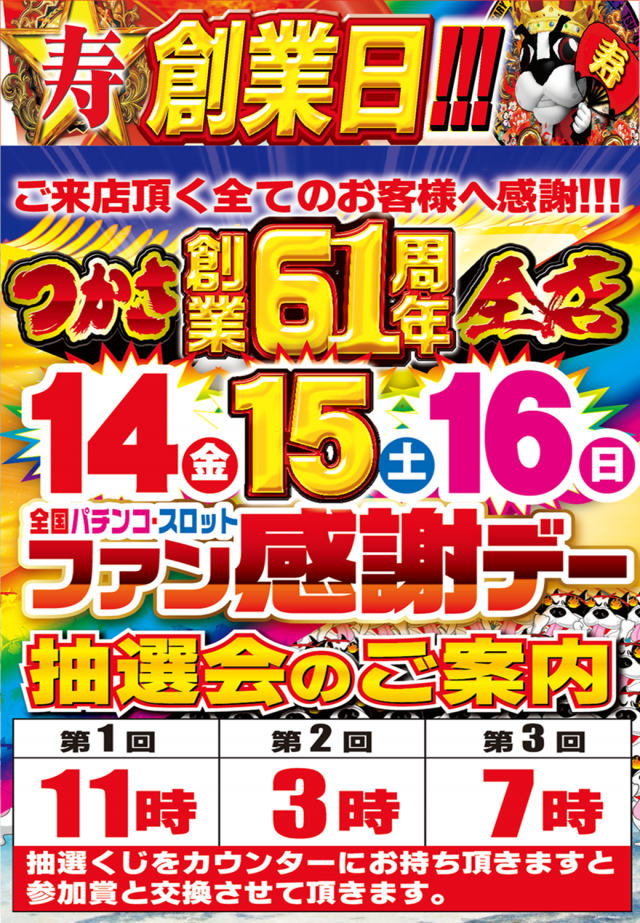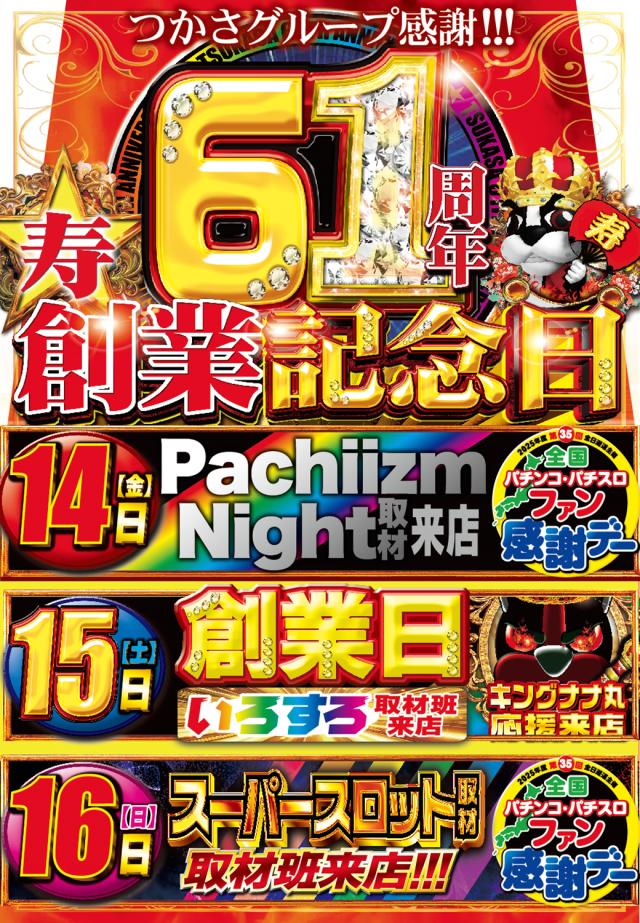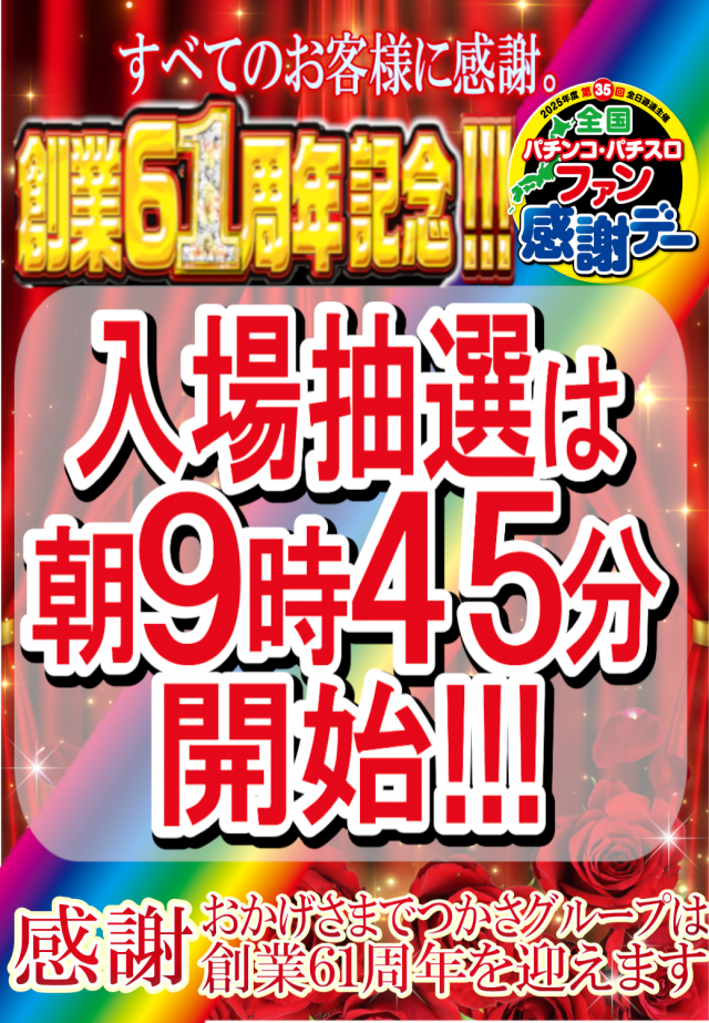 創業61周年☆彡5日は新台入替✖いろすろ金!!!