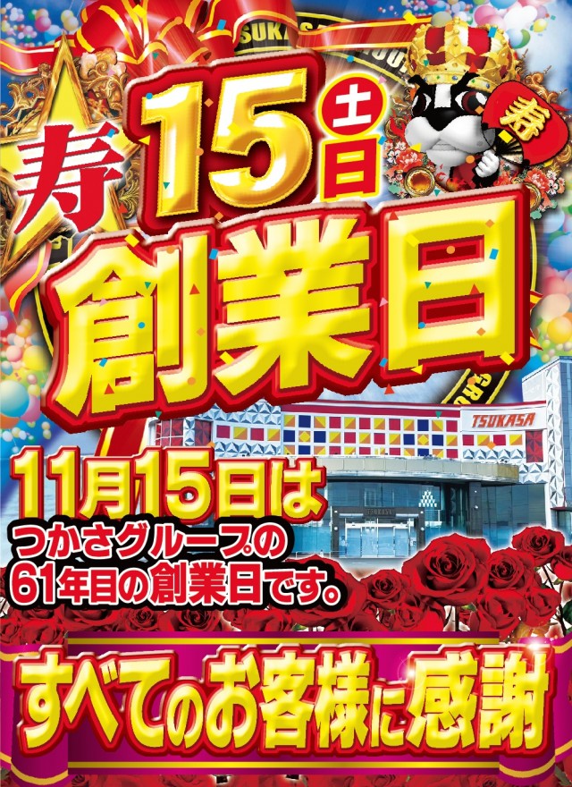 創業61周年☆彡11月15日つかさグループ 創業日!!!