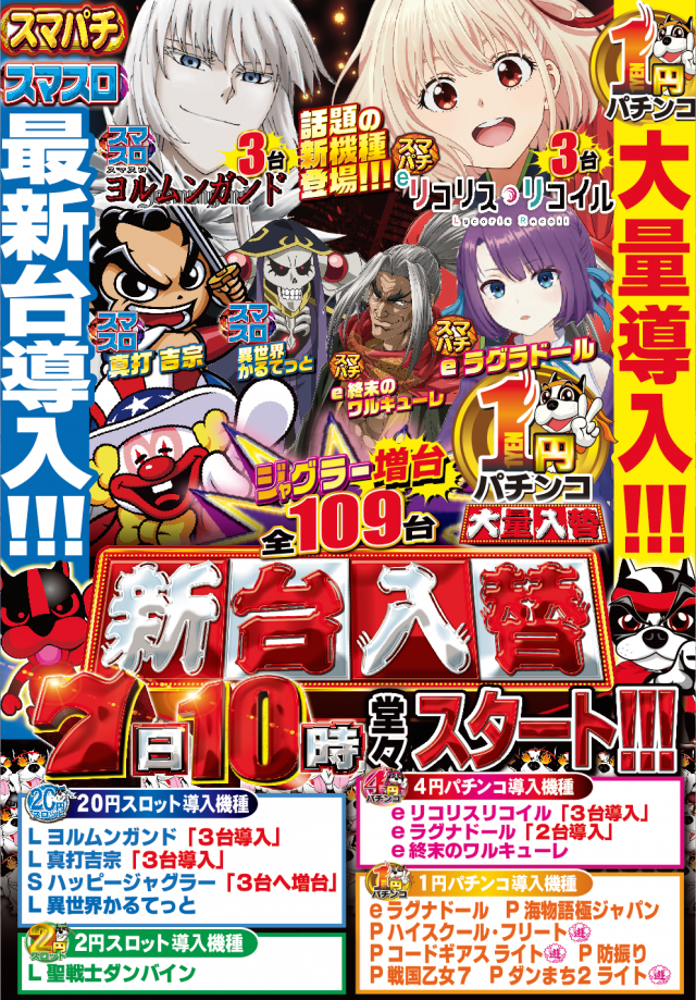 4月7日 新台入替✕乱王!!! 朝10時オープン!!!