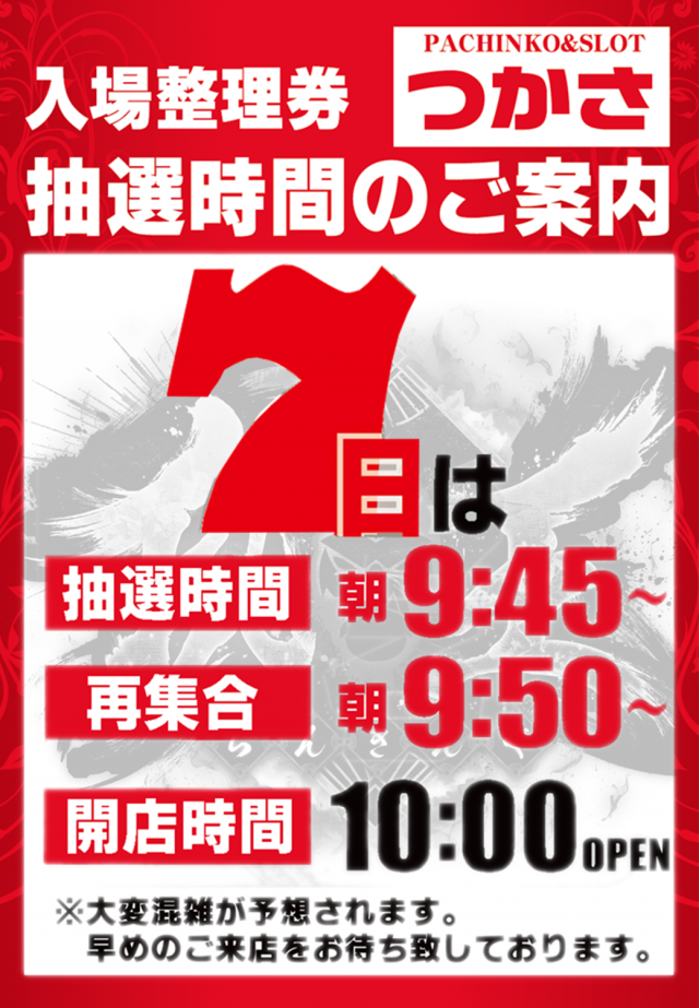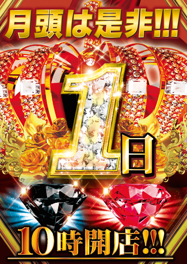 2日店休日 3日新台入替オープン! ご来店お待ちしております