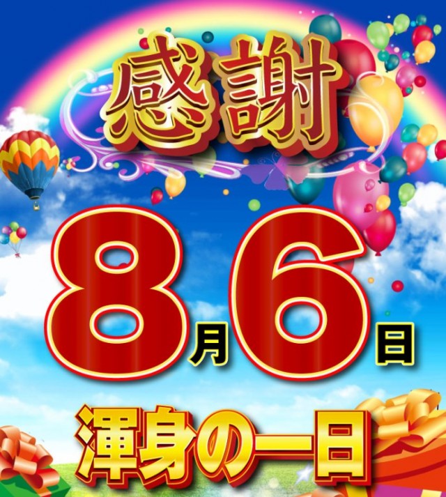 😉8.6感謝😉パムズ渾身の一日😉️ 本日10時オープン