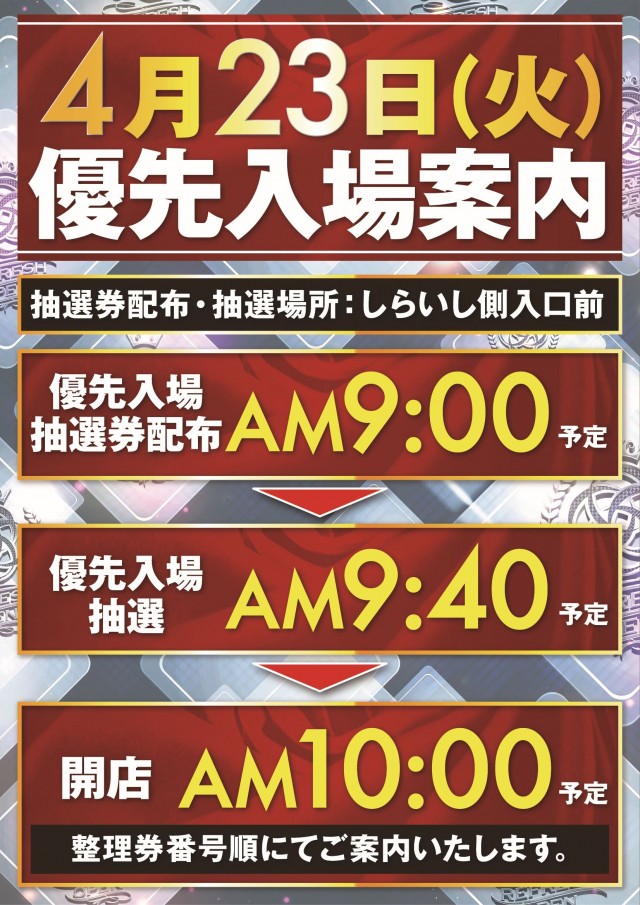 本日【新台入替】キタ(・∀・)コレ♪10時開店