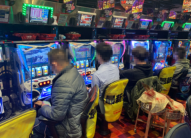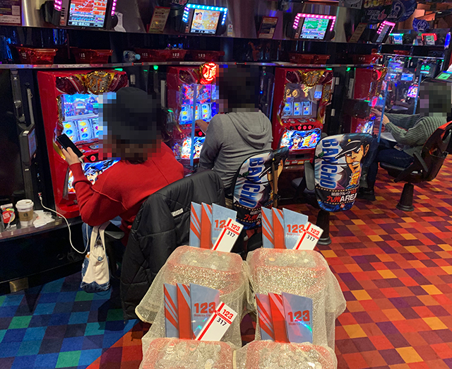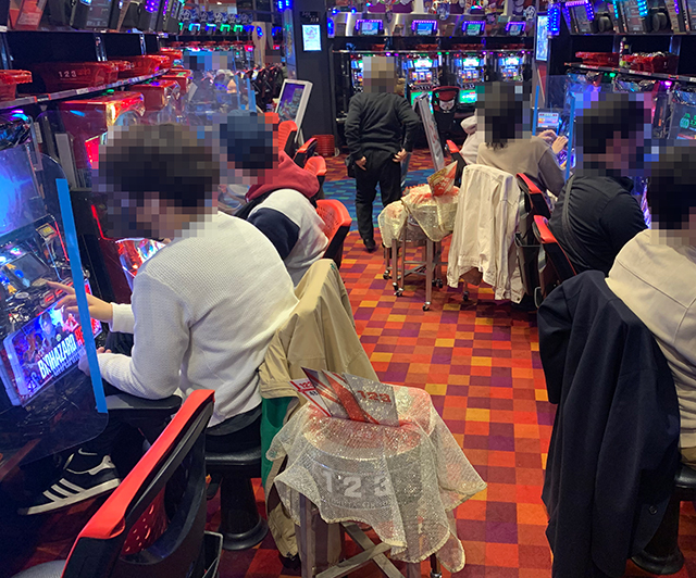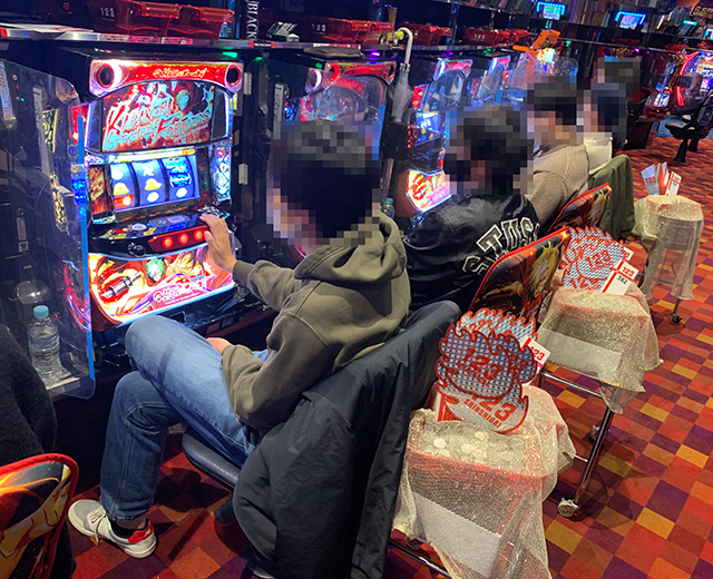 ぱちタウン取材班がパチスロコーナーを観察していた限りでは、今回も「横並びの道」と思しき列がちゃんと存在。