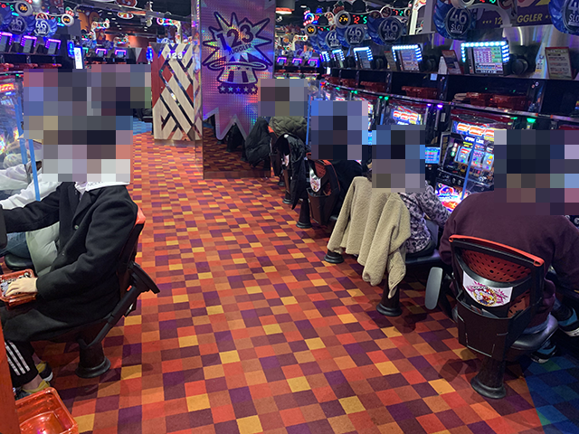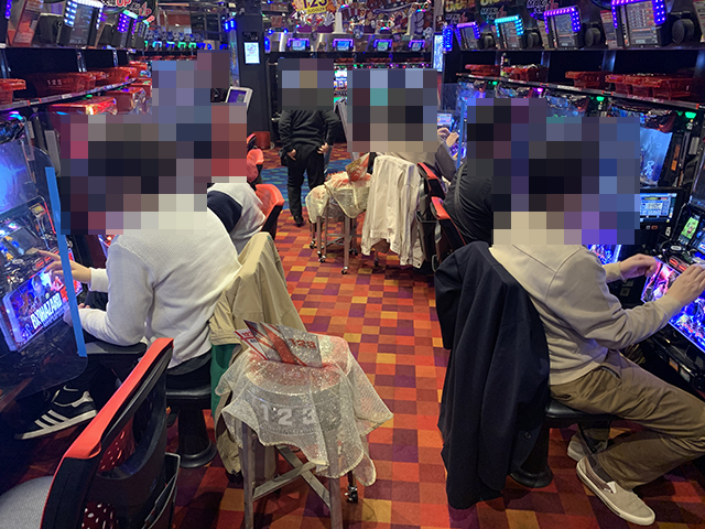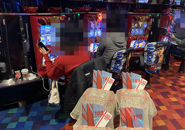 団結した3台を探すべく、真紅の旗印を抱えてパチスロフロアへと足を踏み入れると、活躍をしているプレイヤーの姿が目に飛び込んできた。