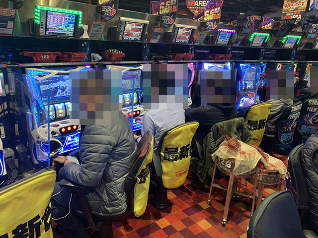 ボーナスタイプやAT機など、パチスロコーナーの随所が盛況!