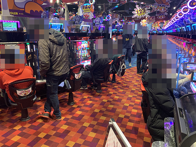 「パチスロ モンスターハンターワールド:アイスボーンTM」の稼働率も高く、にぎやかな状況となっていた。