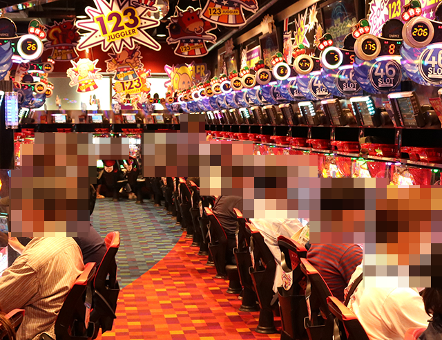 「マイジャグラーⅤ」を支持しているプレイヤーも多く、感じられるにぎわいは大きい。