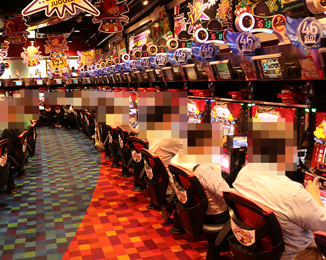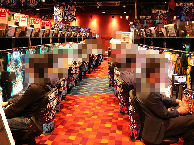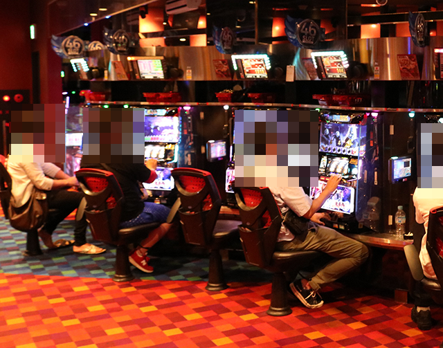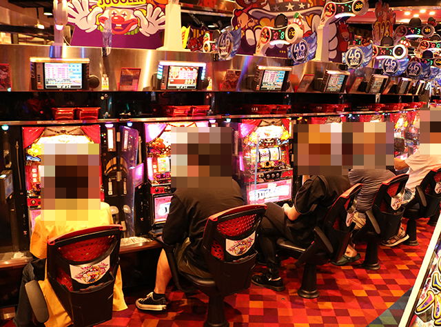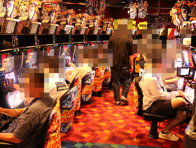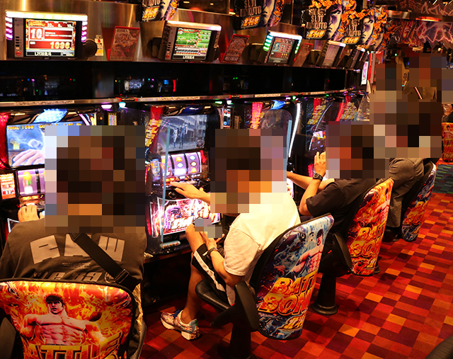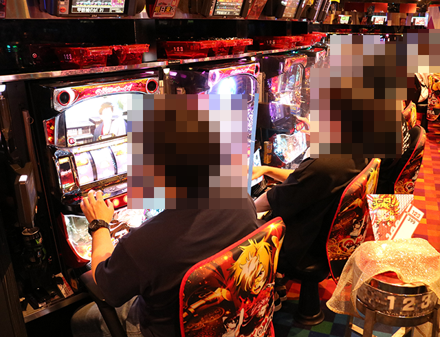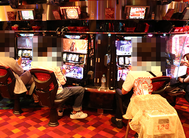 パチスロコーナーをみると、新台や長く愛されているシリーズ機など、さまざまな機種が楽しまれていた。