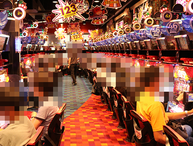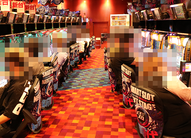 うれしそうに遊技をおこなうプレイヤーがズラリと並んでいる光景は、ずっと眺めていたくなるほどに楽しげ。