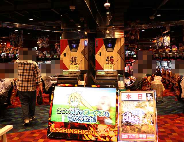 取材時のホール内では、プレイヤーたちが笑顔で遊技をおこなっており、随所が盛況となっていた。