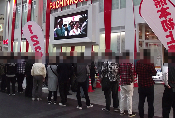 開店直後から20円パチスロでは、「バジリスク~甲賀忍法帖~絆」と「パチスロ北斗の拳 修羅の国篇」が高稼働。