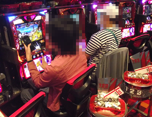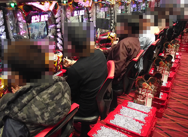 14時頃になっても、20円パチスロの盛り上がりが大きく、「バジリスク~甲賀忍法帖~絆」に機種の性能を最大限まで引き出しているといったプレイヤーを確認。シマ中に広がる華やかな光景からは、満足度の高さが感じられた。