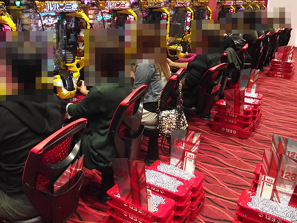 5円パチスロでも、プレイヤーたちが笑みを浮かべて遊技を楽しんでいた。