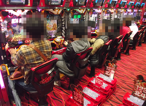 夕方ごろのパチンコをみると、最新機種である「CR花の慶次X~雲のかなたに~」をはじめ、多くの機種が盛況。