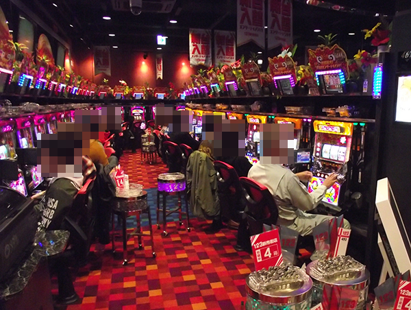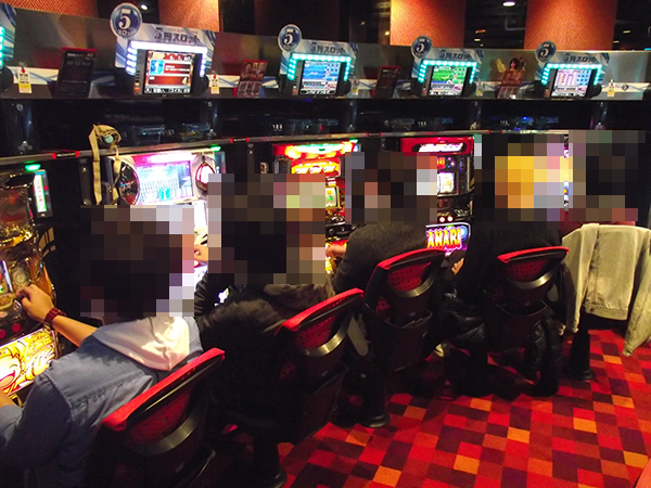 20円パチスロをみると、「沖ドキ!-30」や「ミリオンゴッド-神々の凱旋-」がひときわ活況。機種のポテンシャルを引き出せているためか、プレイヤーたちは満面の笑みを浮かべていた。