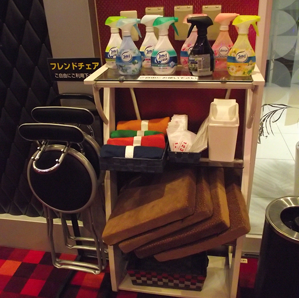 クッションや消臭スプレーの貸し出し、ロッカーの完備など、快適に過ごすための設備やサービスも整っている。