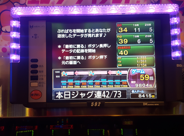 はじめて来店するホールということで、1万回転を達成し、優秀な姿を印象づけられるようにがんばってほしいところだ。