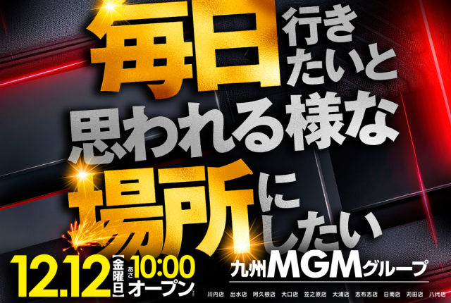 本日12月12日九州MGM10店舗朝10時!9時45分抽選!
