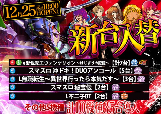 本日12月11日新台入替10時オープン!9時45分抽選開始!