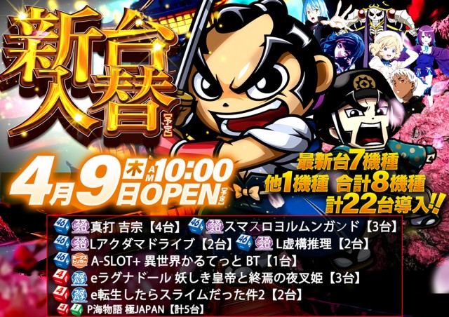 本日4月9日「新台入替」⇒抽選時間は朝9時45分開始‼