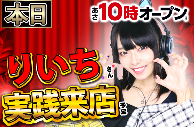 本日実践来店でりいちさん来店!9時45分抽選開始!