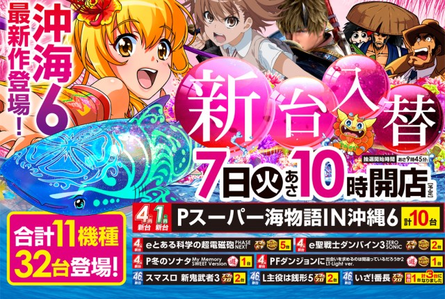 本日10月7日新台入替10時オープン!9時45分抽選開始!