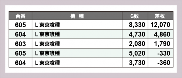 ※差枚数順に掲載しています