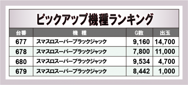 ※出玉数順に掲載しています