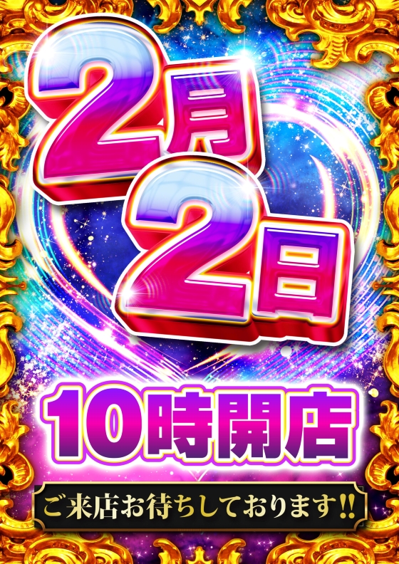 週アケ!2月2日!全館10時OPEN(`・ω・´)