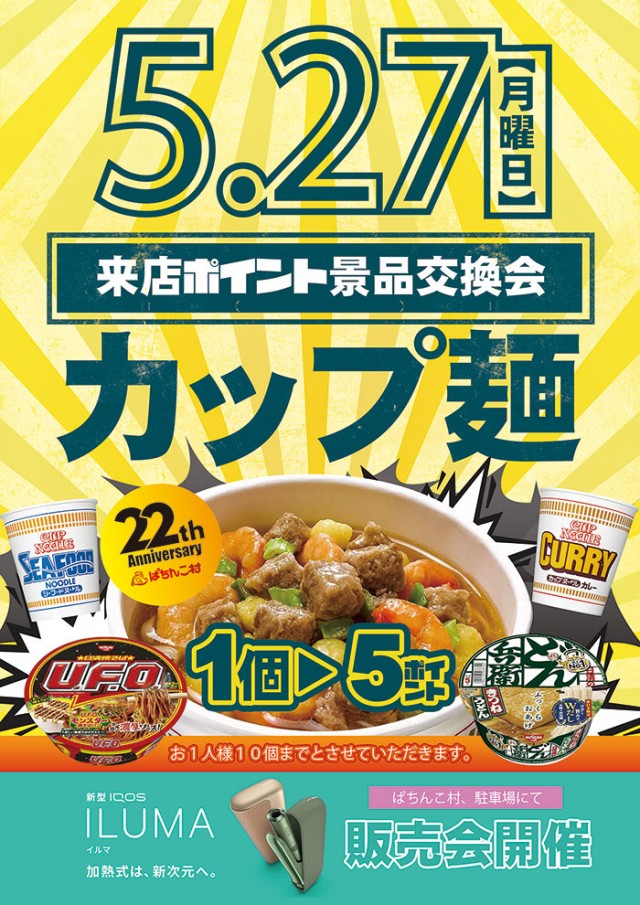 5月27日☆来店ポイント景品交換会☆カップ麺!