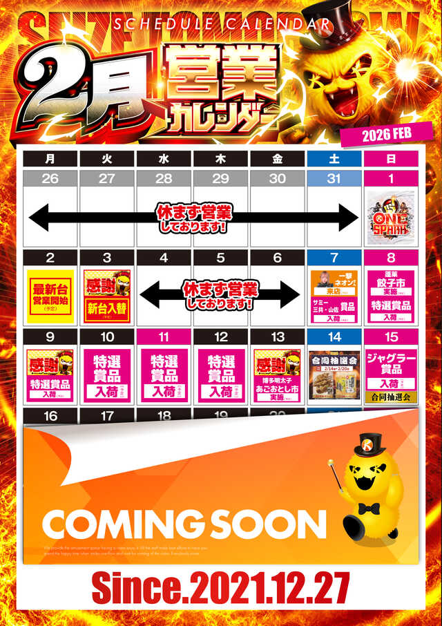 2/17(火)☆新台入替☆AM10:00OPEN☆