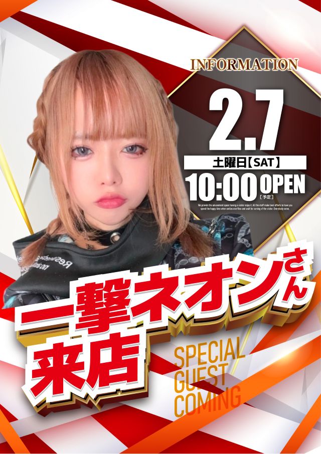 2/7(土)一撃ネオンさん来店☆朝10時OPEN