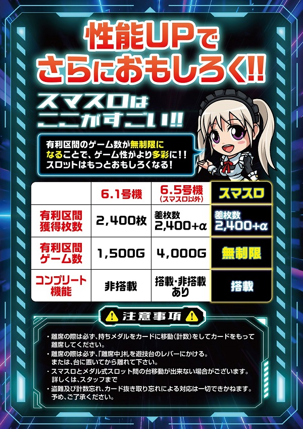 4パチ:107台 1パチ:131台 1000円/46枚スロ:110台 1000円/184枚スロ:17台 |