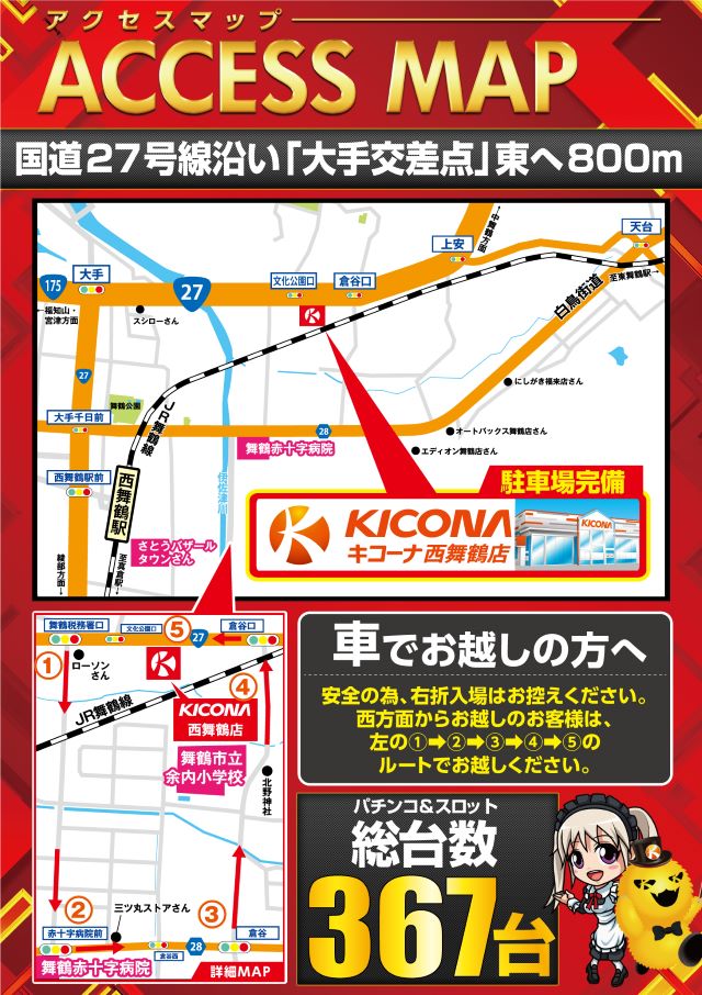 国道27号線『舞鶴税務署口』交差点より、東へすぐ‼ |