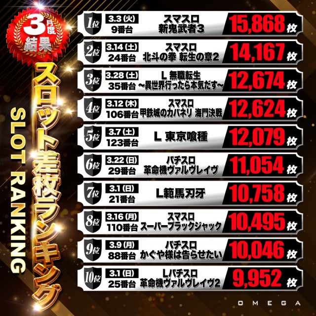 1位 4月4日(土) 2位 4月10日(金) 3位 3月31日(火)