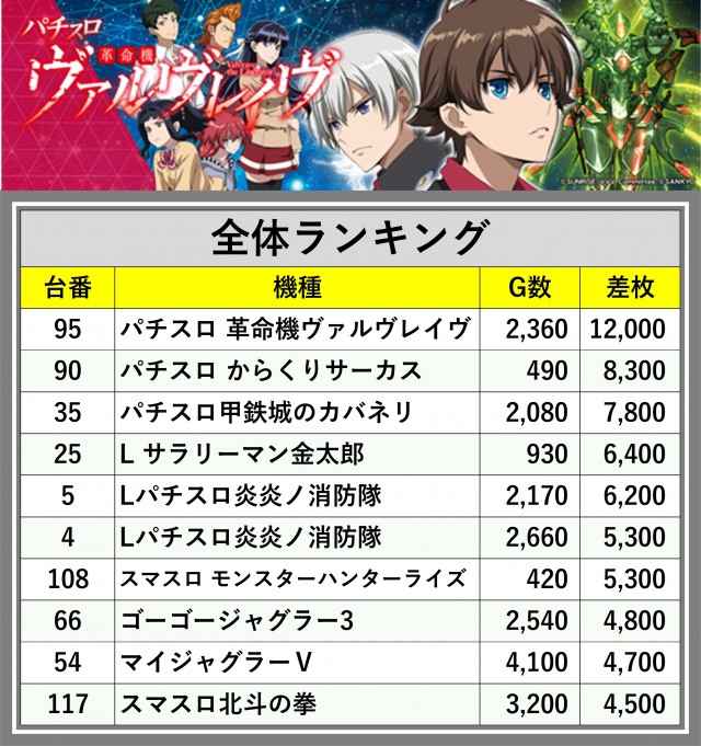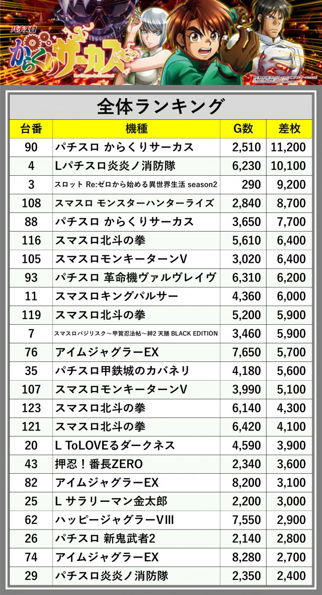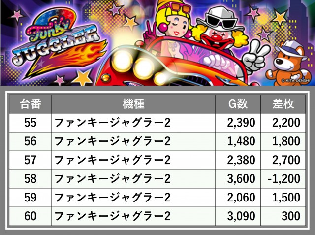 厳選された取材対象機種をはじめ、その他スロット全体から好記録が飛び出した!プレイヤーが楽しんだ1日を下記データにて振り返ってみて欲しい。