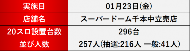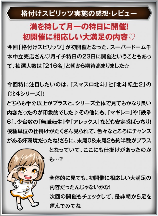 1月23日(金) スーパードーム千本中立売店にて、DMMぱちタウンの「格付けスピリッツ」を実施。