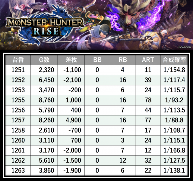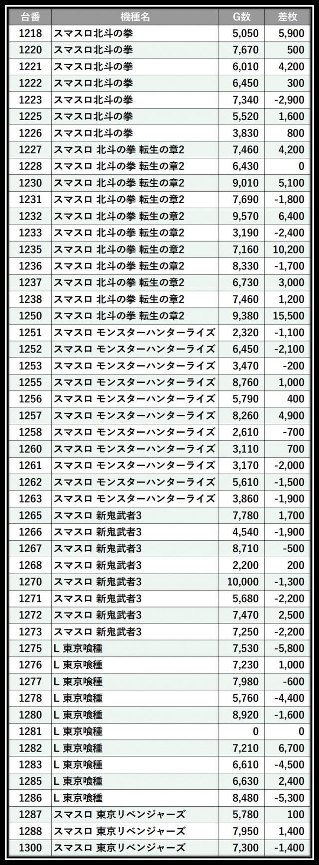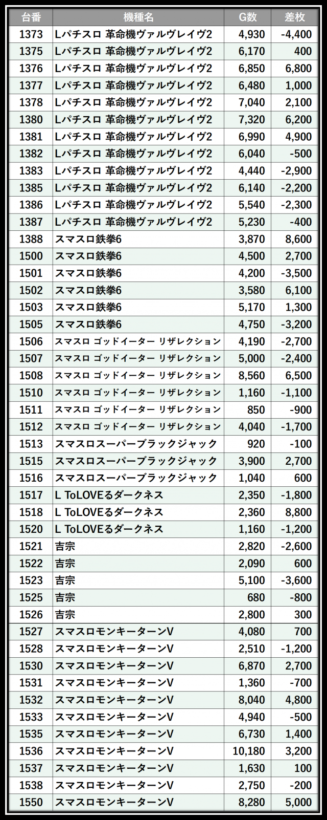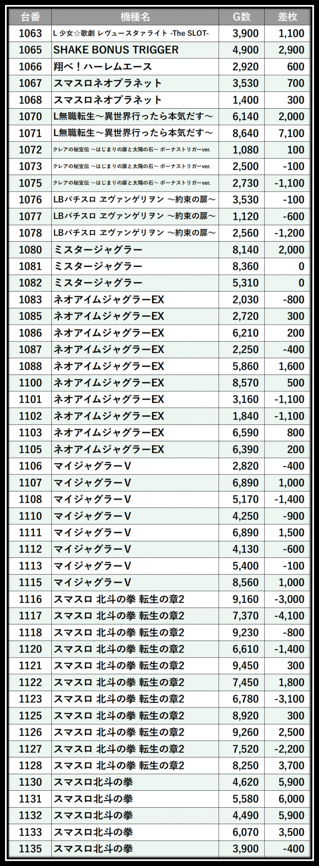 ※差枚数順に掲載しています
