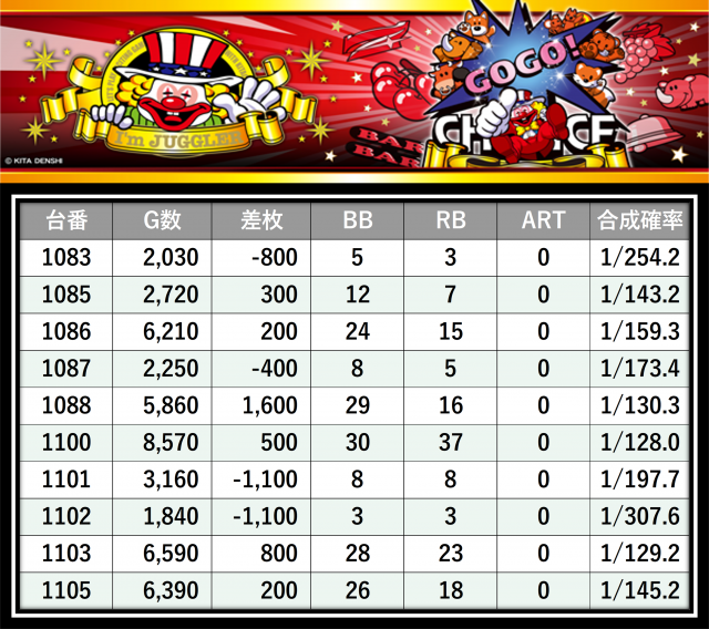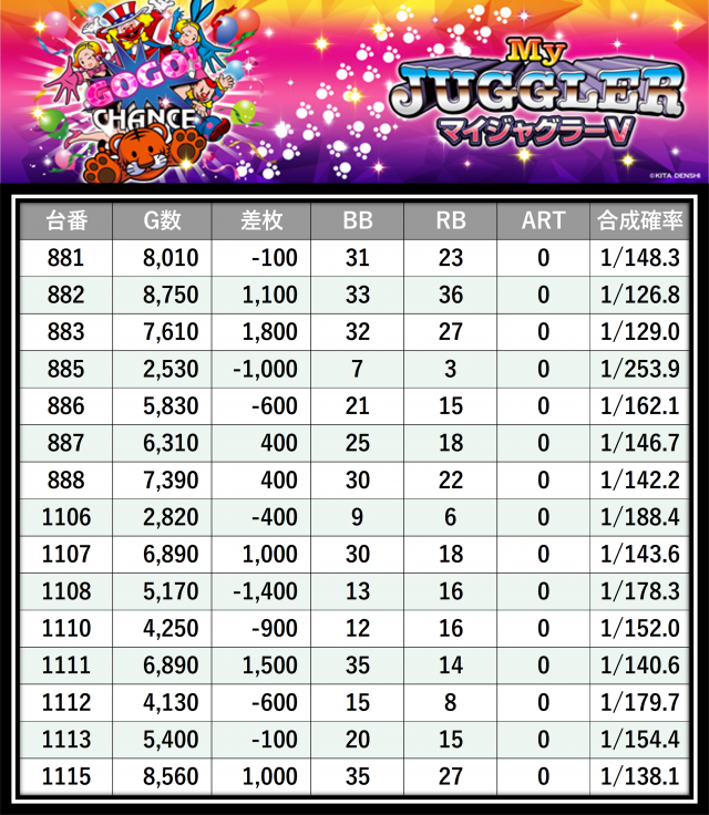 その結果の中から、ぱちタウンが注目すべきポイントを厳選してユーザーにお届け!プレイヤーが楽しんだ一日を下記データにて振り返ってみて欲しい。